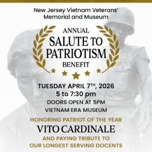 26th Annual Salute to Patriotism Benefit: Please join us for the New Jersey Vietnam Veterans’ Memorial & Museum’s 26th Annual Salute to Patriotism Benefit on Tuesday, April 7, 2026, from 5:00–7:30 PM at the Vietnam Era Museum. This special evening will honor Vito Cardinale, our Patriot of the Year, and pay tribute to our longest-serving […]